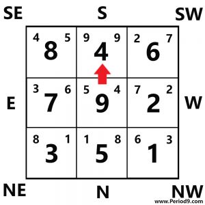 This occurs when the timely star 9 is paired with another 9 at the south and the parent string of 3-6-9 is formed at the south, east and northwest.